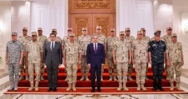 الأحد، 05 أكتوبر 2025 10:25 مخلال لقائه بقادة القوات المسلحة، طلب السيد الرئيس عبد الفتاح السيسي الوقوف احتراما وتقديرًا وإجلالاً وتحية لشهداء الوطن من القوات المسلحة، كما توجه للحضور بتحية احترام وتقدير موجهًا لهم التهنئة بمناسبة الاحتفال بذكرى انتصارات ٦ أكتوبر، كما وجه للقوات المسلحة قيادة وضباطا وصف وجنود التحية والاحترام والاعتزاز لما قدموه منذ أكتوبر وحتى الآن.