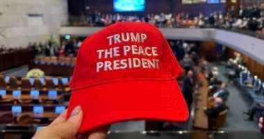 ترامب رئيس السلام.. قبعات "ماجا" الحمراء توزع فى الكنيست قبل خطاب ترامب