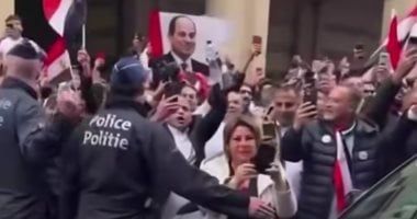 الجالية المصرية في بروكسل تستقبل الرئيس السيسي بأعلام مصر.. فيديو