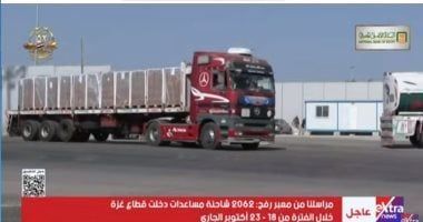 إكسترا نيوز: دخول 2062 شاحنة مساعدات لغزة خلال الفترة من 18 لـ 23 أكتوبر