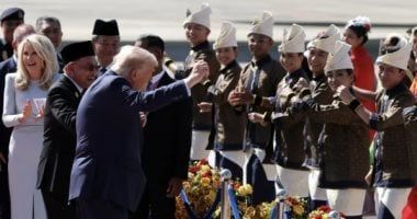 واستقبل ترامب، في مطار كوالالمبور الدولي بحفاوة رسمية وشعبية، حيث اصطف مسئولون ماليزيون يتقدمهم رئيس الوزراء أنور إبراهيم، إلى جانب فرق فنية أدت رقصات تقليدية على أنغام الطبول والموسيقى الماليزية.