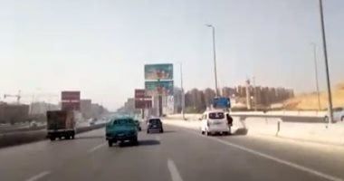تريلا بحمولة أعلي من الارتفاع المسموح تتسبب في توقف الحركة علي الكوبري