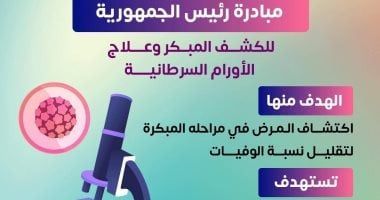 قالت وزارة الصحة والسكان، إن مبادرة رئيس الجمهورية للكشف المبكر وعلاج الأورام السرطانية تهدف لإكتشاف المرض في مراحله المبكرة لتقليل نسبة الوفيات.