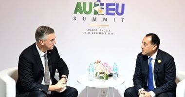 التقى الدكتور مصطفى مدبولي، رئيس مجلس الوزراء، اليوم، أندريه بلينكوفيتش رئيس وزراء جمهورية كرواتيا، بحضور الدكتور بدر عبدالعاطي، وزير الخارجية والهجرة وشئون المصريين بالخارج، والسفيرة نيفين الحسيني، سفيرة مصر لدى جمهورية أنجولا، وذلك في إطار سلسلة اللقاءات التي يعقدها اليوم على هامش مشاركته نيابة عن السيد الرئيس عبد الفتاح السيسي، رئيس الجمهورية، في القمة السابعة بين الاتحاد الأفريقي والاتحاد الأوروبي، التي تستضيفها العاصمة الأنجولية لواندا، على مدار يومي ٢٤ و ٢٥ نوفمبر الجاري.