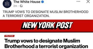نشرت الصفحة الرسمية للبيت الأبيض على "فيس بوك" صورة لخبر نشرته صحيفة "نيويورك بوست" حول تعهده بتصنيف جماعة الإخوان كتنظيم إرهابي.