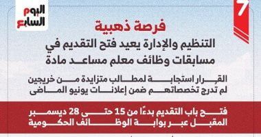 التنظيم والإدارة يعيد فتح التقديم في مسابقات وظائف معلم مساعد مادة