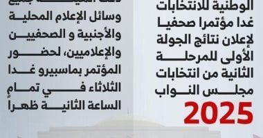 الإثنين، 01 ديسمبر 2025 04:28 متعلن الهيئة الوطنية للانتخابات برئاسة القاضي حازم بدوي، غدًا الثلاثاء، نتائج الجولة الأولى للمرحلة الثانية من انتخابات مجلس النواب 2025.وتدعو الهيئة جميع وسائل الإعلام المصرية والأجنبية والصحفيين.