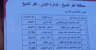أعلنت الهيئة الوطنية للانتخابات أسماء الفائزين والإعادة بـ4 دوائر بكفر الشيخ بانتخابات مجلس النواب وهم :