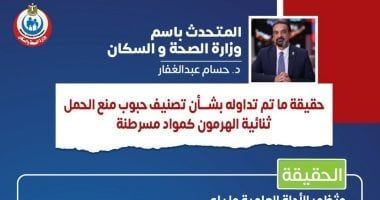 الثلاثاء، 02 ديسمبر 2025 09:56 مكشف الدكتور حسام عبد الغفار المتحدث باسم وزارة الصحة والسكان عن حقيقة ما تم تداوله بشأن تصنيف حبوب منع الحمل ثنائية الهرمون كمواد مسرطنة