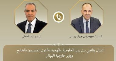 جرى اتصال هاتفى بين د. بدر عبد العاطى وزير الخارجية والهجرة وشئون المصريين بالخارج وجيورجوس جيرابيتريتيس وزير الخارجية اليوناني اليوم الأربعاء، في إطار التواصل الدورى لبحث سبل تعزيز العلاقات الاستراتيجية بين البلدين وتناول التطورات الإقليمية.