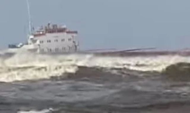 وتعرضت السفينة للجنوح، ودفعتها التيارات المائية القوية باتجاه الشاطئ، وسط صعوبة في التحكم بمسارها بسبب شدة الرياح وارتفاع الأمواج.