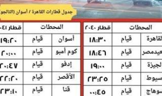 القطار رقم 2030 يقوم من القاهرة 7:00 مساءً ويصل أسوان 6:40 صباح اليوم التالي.
