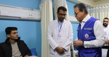 الاطمئنان على مصاب فلسطيني بتلقى العلاج بمستشفى العريش