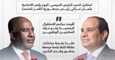 وفى ختام كلمته، قال الرئيس السيسى للرئيس عثمان غزالى:"لقد أسعدنى لقاؤكم اليوم، مؤكدًا التزام مصر بتعميق أواصر التعاون مع جمهورية القمر المتحدة الشقيقة، لما فيه خير بلدينا وشعبينا وقارتنا الإفريقية.أجدد فخامة الرئيس الترحيب بكم والوفد المرافق، فى بلدكم الثانى مصر.. متمنيا لكم زيارة ناجحة، تعود على شعبى البلدين، بكل الخير والاستقرار والتقدم".
